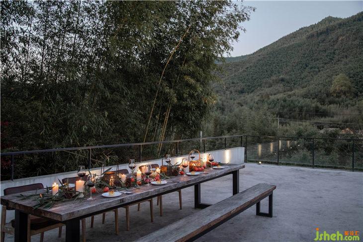 整個大廳將大面積的落地玻璃窗和玻璃門運用到極致,設計師不希望門外的山野之色被厚重冰冷的墻體阻隔,而是希望眼睛所觀之處皆是山野綠色,即使不走出室外也能將山林景色攬入懷中。