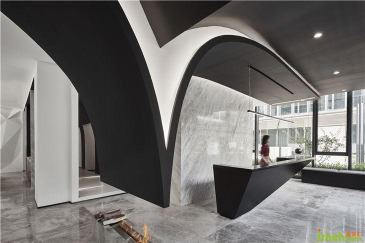騰邦差旅管理有限公司是騰邦國際旗下企業(yè)差旅服務(wù)品牌。業(yè)務(wù)范圍涵蓋機票酒店、會展旅游、差旅管理、金融服務(wù)四大板塊,專注為企業(yè)客戶提供專業(yè)差旅管理服務(wù)??蛻粼跉W洲期間,走訪了一些德國500強企業(yè)后,引入了一種新的辦公理念即——“開放辦公”。在于致力打造零距離的溝通環(huán)境。此間辦公設(shè)計仍然以飛行與旅游為靈感。將飛機中的機艙、引擎、黑匣子等元素進行解構(gòu),并重組,打破飛機的傳統(tǒng)結(jié)構(gòu),使整個空間具有不穩(wěn)定且極富運動感的形態(tài)傾向。希望以抽象極簡的細(xì)節(jié)感知匠心精神,帶給人沉穩(wěn)、舒適的感官體驗。主色調(diào)為黑白灰,讓辦公空間極具未來感,配以暖光燈為點綴,以此散發(fā)出更多活力。在追求美感的同時,我們還考慮空間內(nèi)的每一處關(guān)系,將頂面向兩端自然延伸,與地面的壁爐相結(jié)合,巧妙地將左右空間劃分為兩個功能區(qū),不失流通性,讓每一處都能相互滲透。