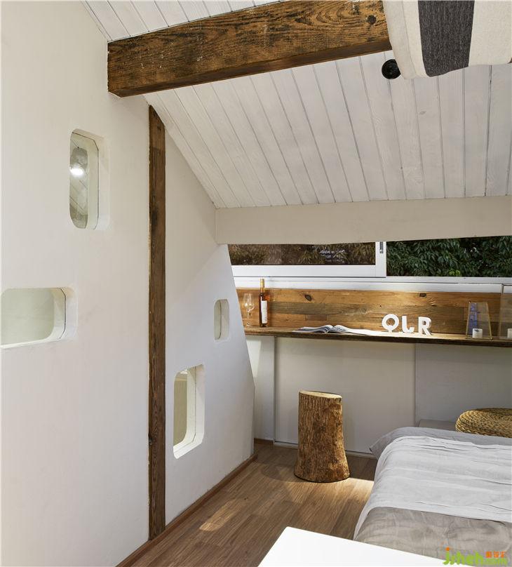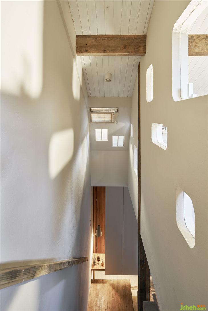 入戶通過一個懸空的體塊,加強體塊感并且多功能儲藏。通過體塊間的穿插實現(xiàn)客廳與樓梯間的對話,重新規(guī)劃的樓梯區(qū)域更像是一條時光隧道,充滿年代的回憶。布滿歲月痕跡的老木頭與當代不斷碰撞,現(xiàn)代建筑語匯與低度設(shè)計空間的對話。閣樓重新做了利用,增大了開窗,做了大型儲物的套房。建筑上最大化采光和通風(fēng),營造愉悅自在的生活狀態(tài)。
