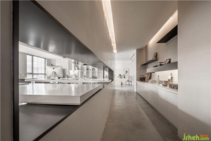 探入其中,中間的大體塊將訪客動(dòng)線與員工動(dòng)線做了很好的區(qū)分,同時(shí)設(shè)計(jì)師將墻體打通,開了一個(gè)趣味性的窗口,前來(lái)拜訪的客人與員工不會(huì)互相影響,讓空間能夠既獨(dú)立又可以讓彼此產(chǎn)生聯(lián)系。