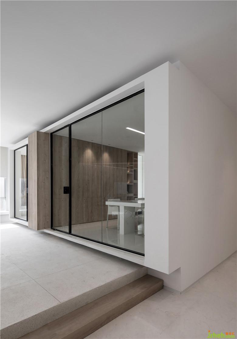頂部的四邊形吊頂為空間增加層次感,以一根木梁貫穿其中,將墻體打通,連接了休息區(qū)與辦公區(qū)。