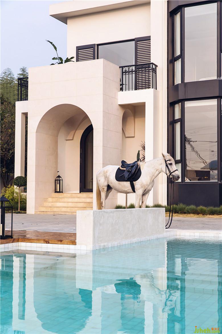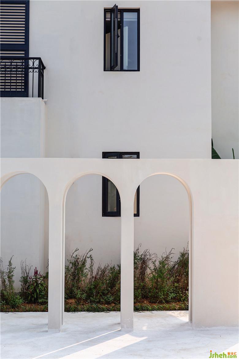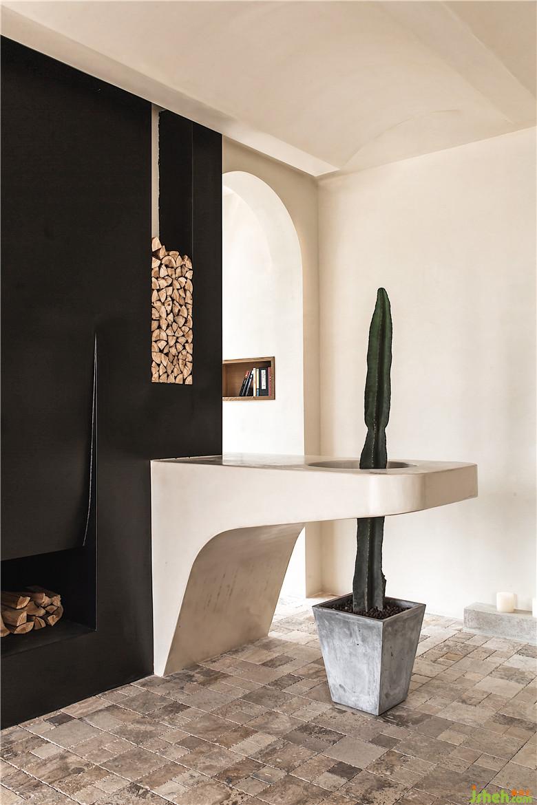 走入戶(hù)外派對(duì)區(qū),拱形的結(jié)構(gòu)式造型墻為空間增添了觀(guān)賞性,同時(shí)又能與人產(chǎn)生很好的互動(dòng)。一側(cè)有著花園壁爐,點(diǎn)燃壁爐,亮起燭火,在自然中享用晚餐,愜意又舒適。