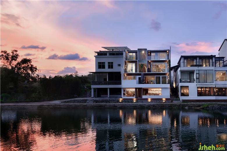 「駐·85民宿」位于江南地帶麗水的古堰畫鄉(xiāng)中。民宿被一片湖光山色圍繞,這里早晨薄霧蒙蒙,一葉竹筏在湖面泛起,如仙境般充滿詩意,而到了夜晚,霞光將天空染成了紅色,時光變得靜謐柔和。