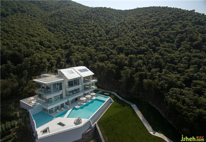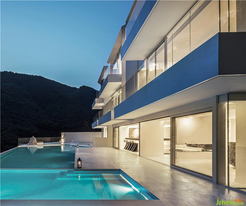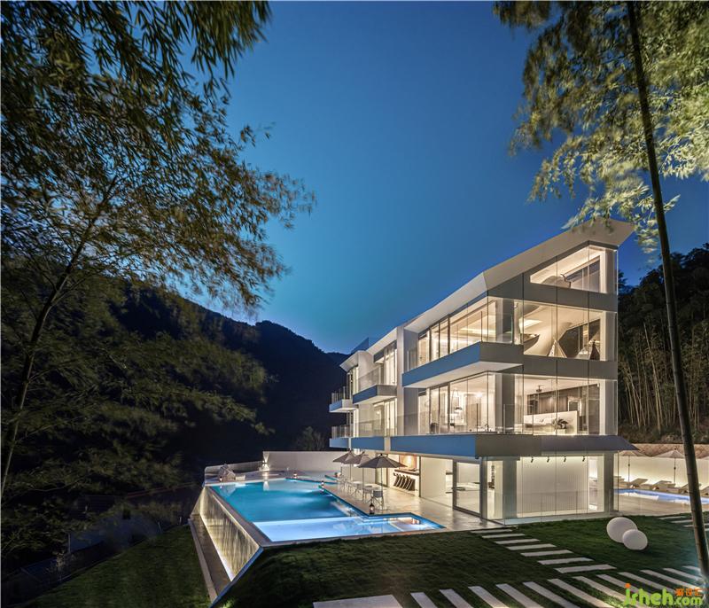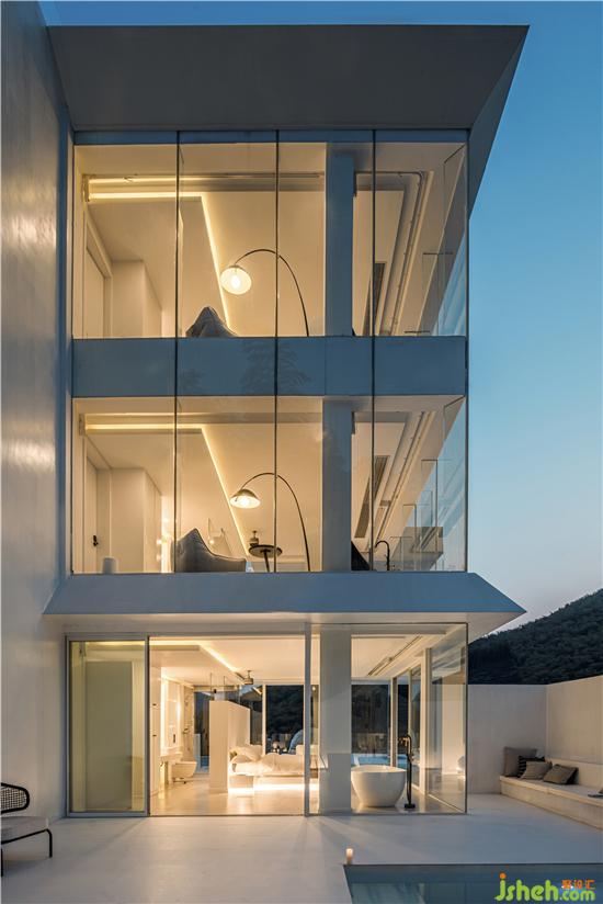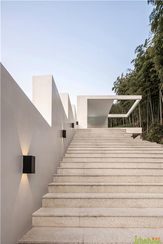 The hotel was built in this natural landscape, pure and independent in its all-white architecture. Because the building is located on a hillside, shen mo, the designer, takes measures according to local conditions, laying out a stepped walkway leading to a high place, where you need to pass through a "box" to enter the house, greet guests with a sense of ceremony, and ascend the steps to the destination.