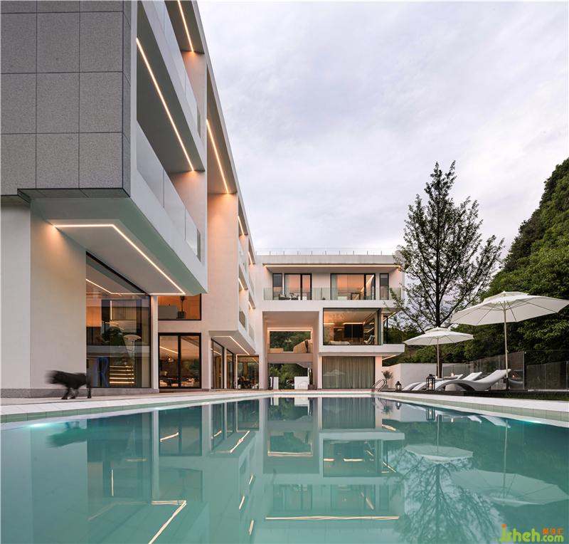 民宿主希望在這樣一片自然環(huán)境中,建筑能夠盡大可能地?fù)肀ё匀?,純澈,透明,設(shè)計(jì)師沈墨與陶建浦便以“杉里看云,云里看山”為主題,打造出了一個(gè)全新的建筑。