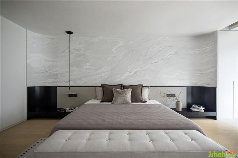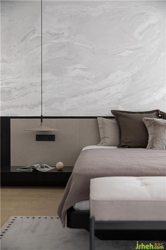 The designer pays great attention to the privacy and comfort of the bedroom, choosing simple and elegant colors and texture materials to match, quiet and restrained.