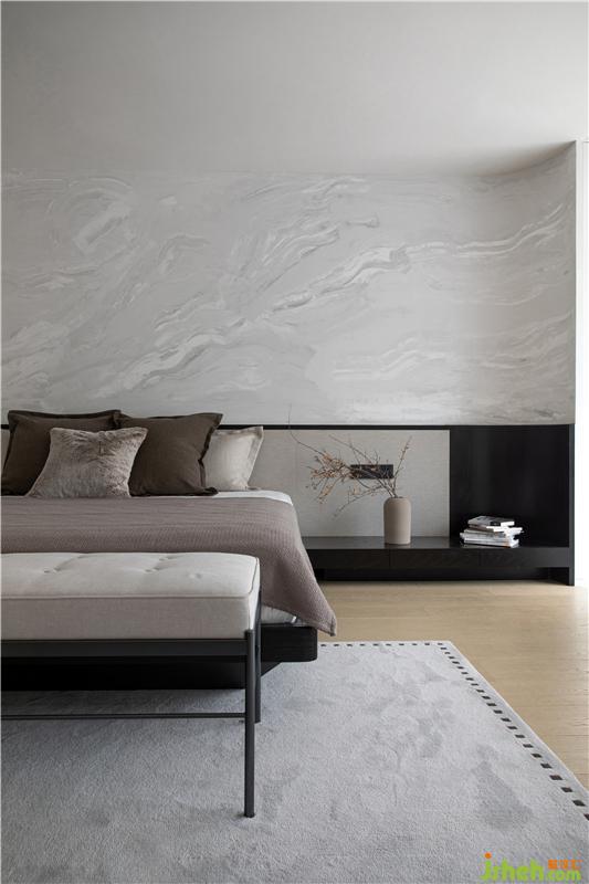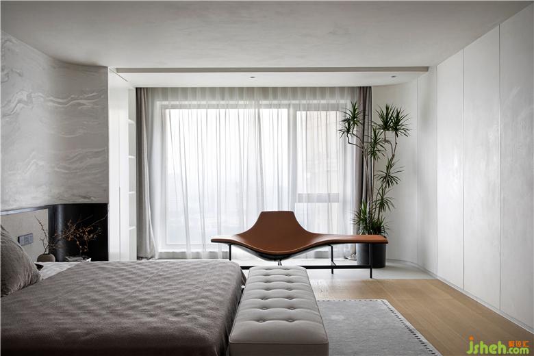 私密性以及舒適度對臥室來說十分重要,選用素雅的配色與紋理材質(zhì)做搭配,安靜內(nèi)斂。