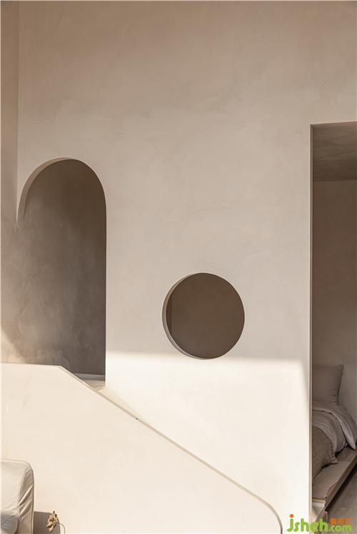 親子房中的結(jié)構(gòu)形態(tài)各異,充滿著趣味性,配上滑梯與鏤空墻,整個(gè)空間仿佛是一個(gè)游玩的天地。同時(shí)考慮到實(shí)用與美觀性,圓形的弧度能夠最大地保障孩子在玩樂時(shí)的安全問題。