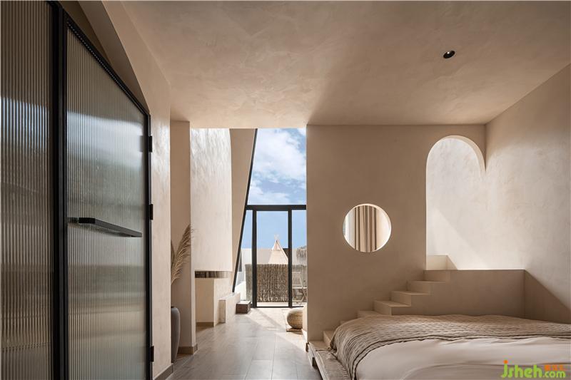 The designer hopes that guests can jump directly into the water from the room and interact with the sea at all times. Therefore, a starry sky swimming pool was built between the two guest rooms, echoing the concept of "the sky and the sea".
