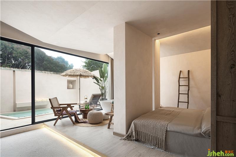 套房?jī)?nèi)的獨(dú)立的院子與泡池,很好地隔絕了環(huán)境的干擾,享受極致的私人度假感廈門(mén)酒店設(shè)計(jì)。