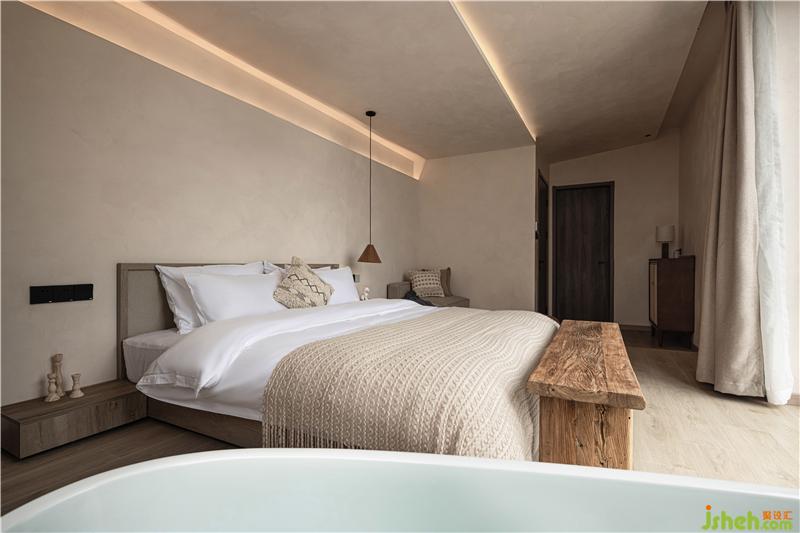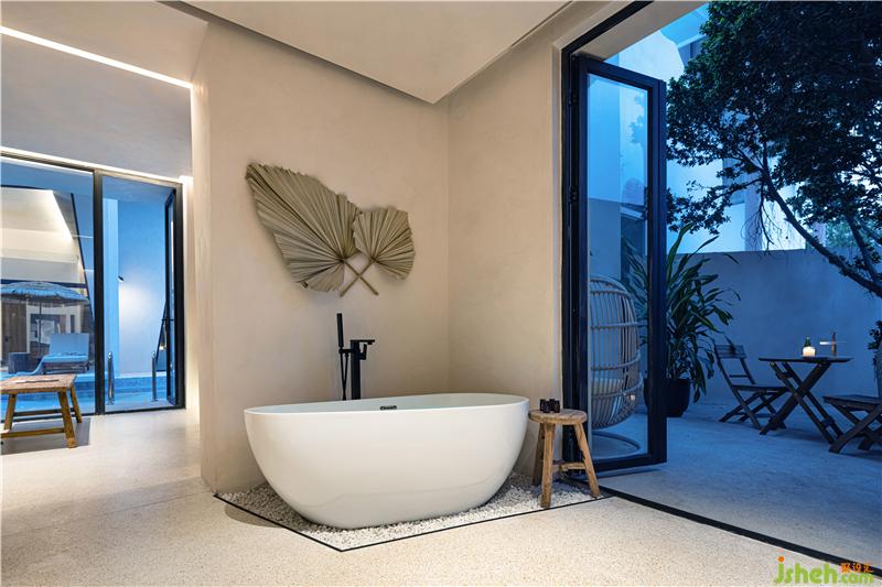 另一間套房與泳池相連,也有一個獨立的院落,原生的天然石頭與樹木在空間中形成新的碰撞,在這里可以享受片刻寧靜。