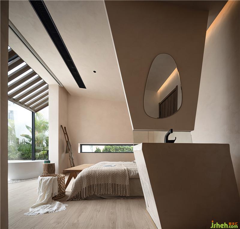 二層的客房配有獨立的陽臺,穿透海底的光線為設計靈感,分別使用圓形與長條形的造型般作為屋檐,最大程度地讓陽光灑滿空間的每一個角落。