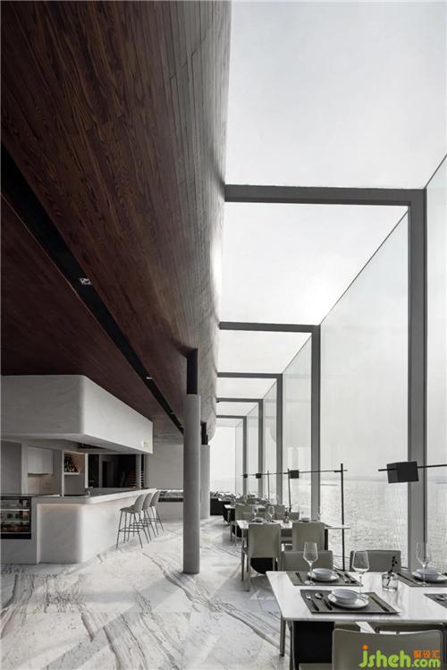 The original building is arc-shaped, and transparent “boxes” are constructed of glass. Every space can enjoy the view of the Yangtze River. The hotel covers an area of 2,000 square meters, and has planned 12 guest rooms, restaurants, party areas, open-air infinity swimming pools, public rest areas and other areas.