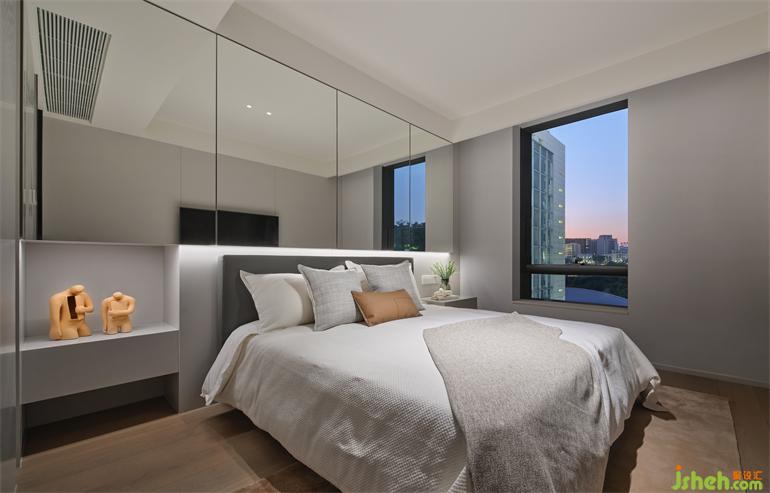 The arc cabinet created in the bed room can not only collects items but also increase the sense of spatial level, while the match color of lemon yellow lights up the atmosphere of the whole space and increases vitality and dynamic sense, which looks warm and simple.