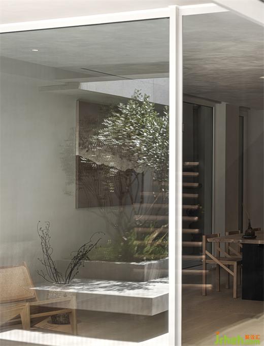 雕塑感的旋轉樓梯始終貫穿著整個住宅,如樹干般承載著空間的生長,光線進入室內,臺州別墅設計視覺感受被縱向拉長,打破沉悶的格局,因此更加自由與充滿力量感。