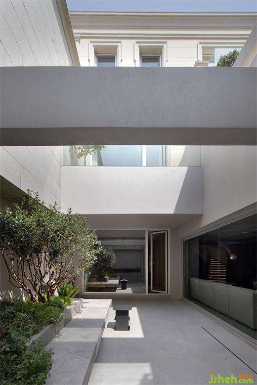 臺州別墅設(shè)計在空間的布局上,餐廳、客廳等活動區(qū)圍繞著下沉式庭院分布,達(dá)到一處一景的空間感受?;▓@景觀透過落地玻璃映入室內(nèi),室外的自然環(huán)境與室內(nèi)產(chǎn)生互動,進(jìn)一步喚醒了人們對自然的美好向往。