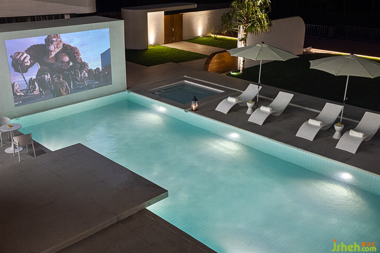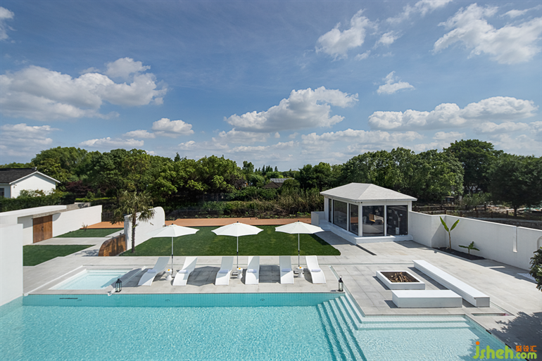 蘇州民宿設(shè)計(jì)交錯(cuò)重疊的泳池被巧妙地通過(guò)結(jié)構(gòu)分為淺水區(qū)、深水區(qū)、兒童戲水區(qū)。篝火區(qū)域可以為入住的客人提供更為原始自然的感受。
