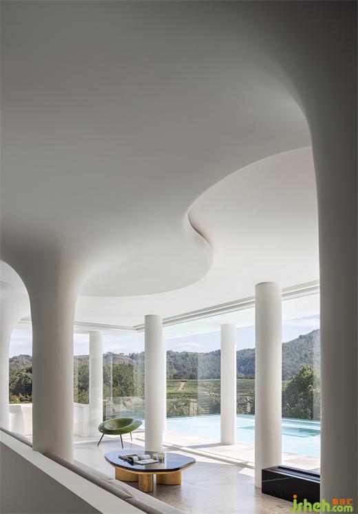 泳池作為連接內(nèi)與外的媒介,遂昌米窩酒店設(shè)計(jì)通過(guò)打通的體塊讓光線照射進(jìn)地下空間,空間的共生關(guān)系進(jìn)一步被強(qiáng)調(diào)。