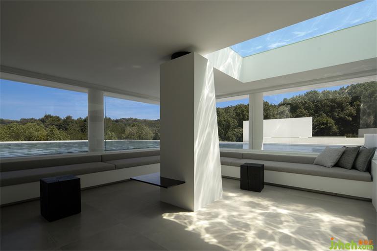 陽(yáng)光透過(guò)流動(dòng)的水波照射進(jìn)地下空間,為空間增加一層靈動(dòng)的色彩。