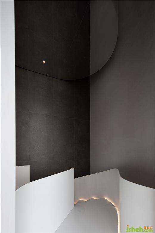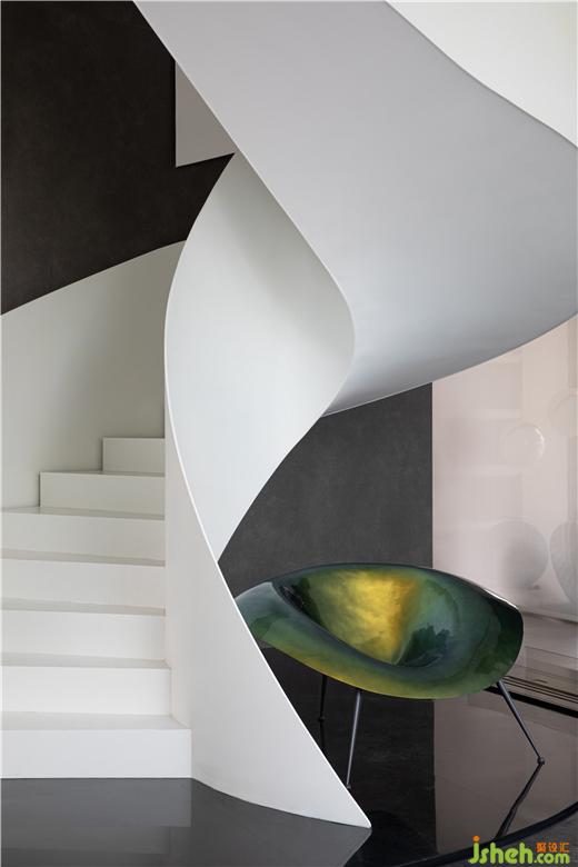 雕塑感的旋轉(zhuǎn)樓梯作為視覺的中心,