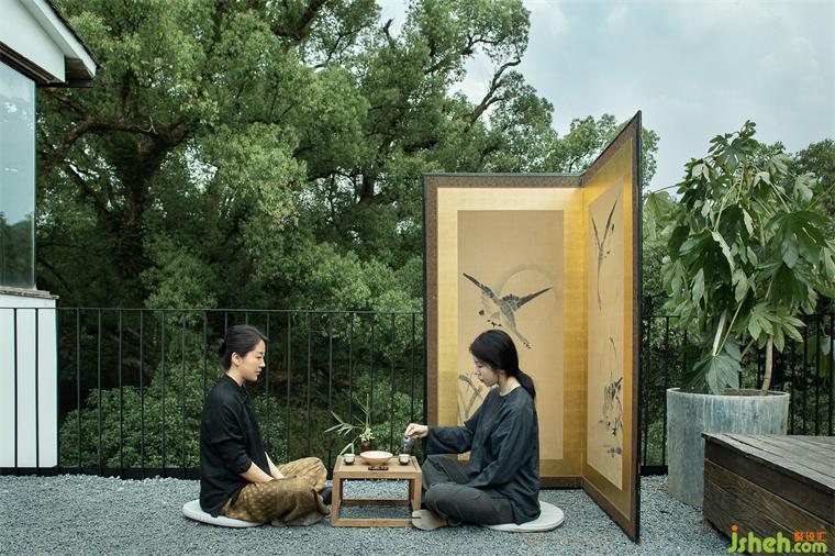 二層茶室用茶搭建文化的橋梁,幽玄的氛圍帶來(lái)純凈的美學(xué)感受,仿佛來(lái)到一片空靈的世界。茶室設(shè)計(jì)光影描繪時(shí)光,身心在此沉浸,以茶會(huì)友,在古樟樹(shù)下開(kāi)展一場(chǎng)高維度的精神交流。