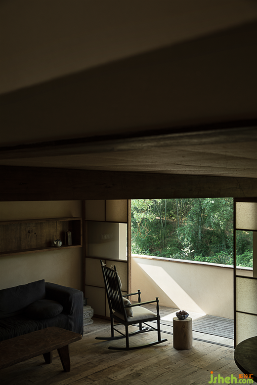 推開客房的門,不刻意對空間進行修飾,讓窗外的景象成為空間中的一部分,綠意滋養(yǎng)著身心,仿佛睡在自然中。