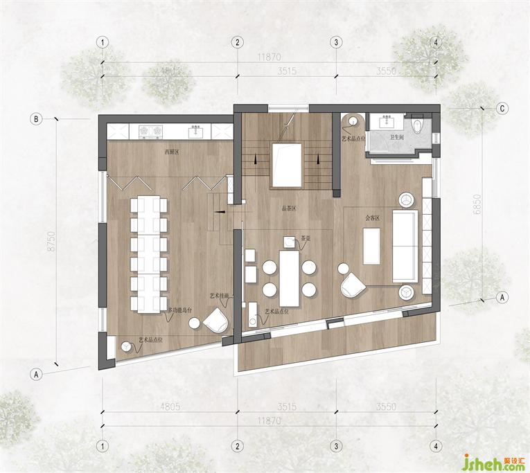 茶室設計多樣化的茶桌形式為客人帶來不同的喝茶體驗,觀景而飲,自然與人形成互動,別開生面。