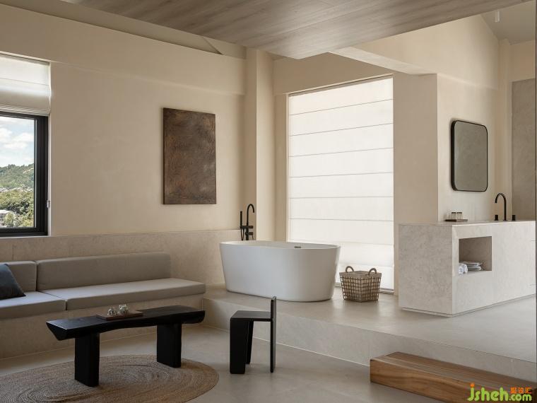 民宿設(shè)計(jì)通過戶外的廊架將三座建筑聯(lián)系?起,通過陣列?度象征性的視覺藝術(shù)形成夢幻場景。Connect the three buildings together through outdoor pergolas and create a dreamlike scene through highly symbolic visual art arrays.
