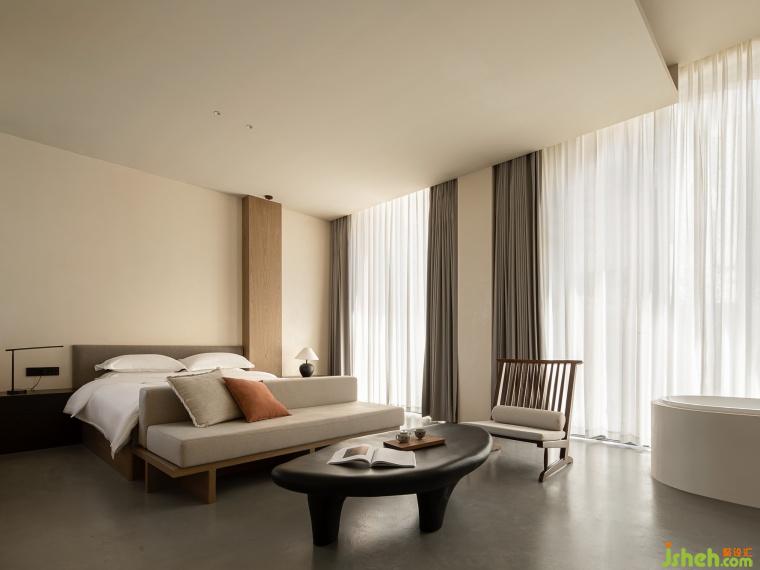 Through the corridor, surrounding the central swimming pool, the first floor area of the three buildings is open and elevated, providing more communication space for guests.