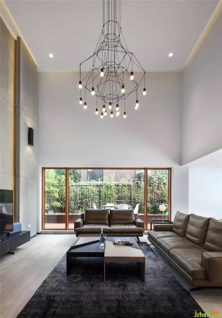 別墅裝飾以最質(zhì)樸的肌理呈現(xiàn),黑白灰的主調(diào),加以木色的點綴,任由漫射在室內(nèi)如換的光線,亦或者精心設計的燈光在墻壁上爬過,在地毯上漫過......