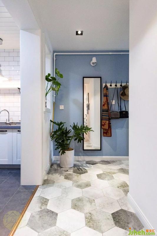 進門可以坐著換鞋子,掛包包,出門可以照鏡子。