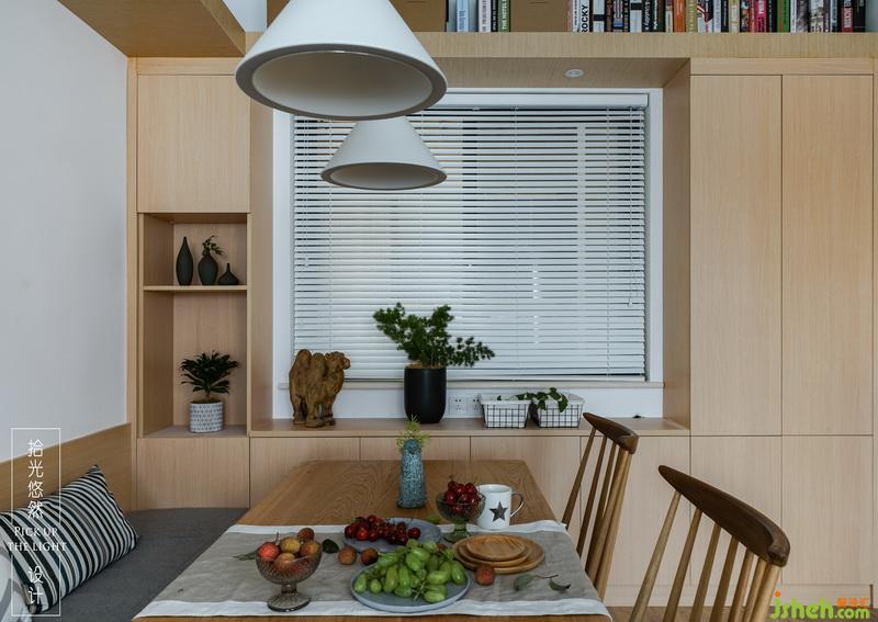 設(shè)計(jì)的時(shí)候考慮通透和引入自然采光,我們采用了隔斷壁龕的處理方式,在上面可以擱置一些自己喜歡的小擺件,讓就餐變成一件更加愉快舒服的事情。