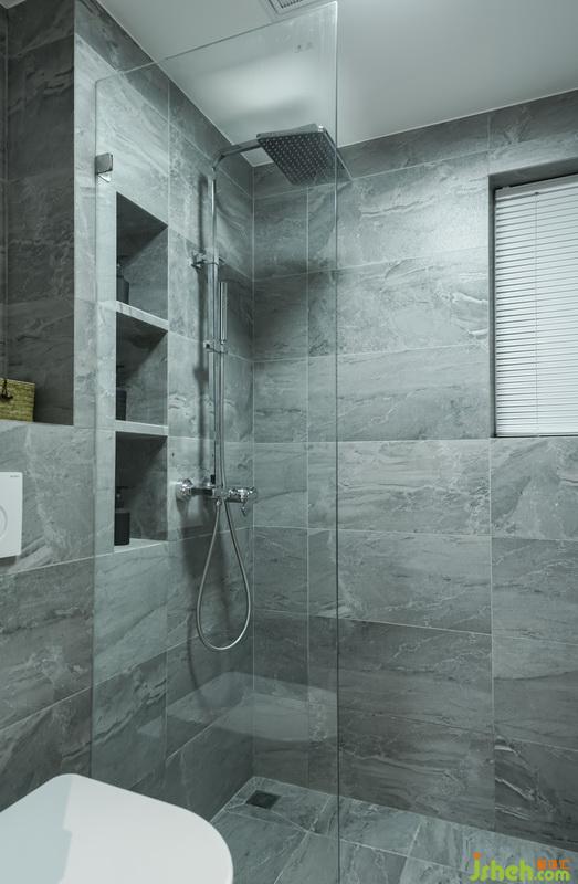 針對這一塊空間,室內(nèi)設(shè)計(jì)師做了較大的戶型改造處理增加了盥洗間功能,嵌入式馬桶提升生活品質(zhì),壁龕的設(shè)計(jì)讓空間里沒有暴露出的五金掛件,用這個鏡子看自己,是個會發(fā)光的人兒啊