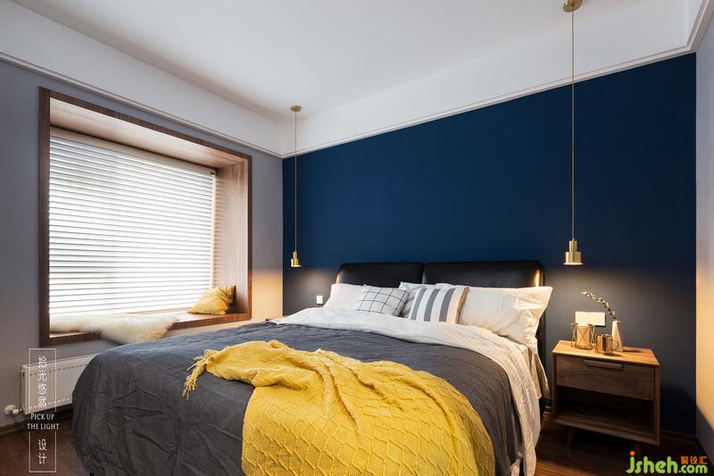 床頭背景采用深藍(lán)色有助睡眠與休息