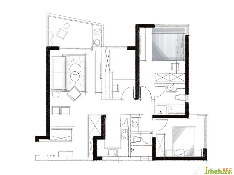裝修公司針對這一塊空間,做了一些調(diào)整,擴(kuò)大了衛(wèi)生間,增加了坐式浴缸,獨立式淋浴區(qū),多壁龕的設(shè)計讓空間里沒有暴露出的五金掛件