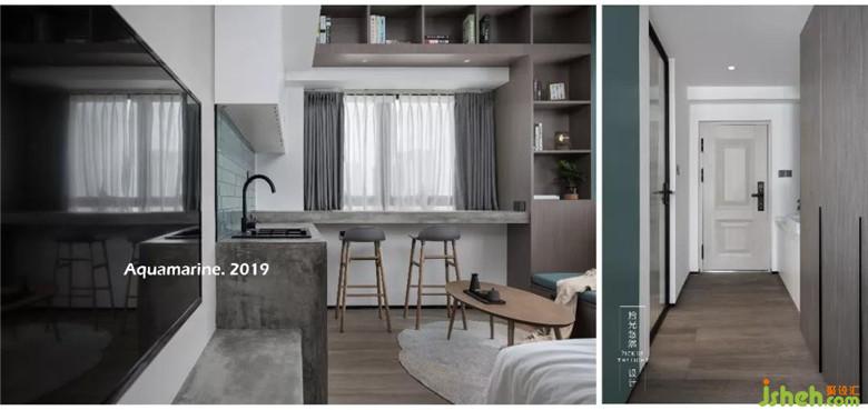 可以看到這套房子大量地用了現(xiàn)澆水泥臺(tái)面,和現(xiàn)場(chǎng)木工制作的木飾面家具。