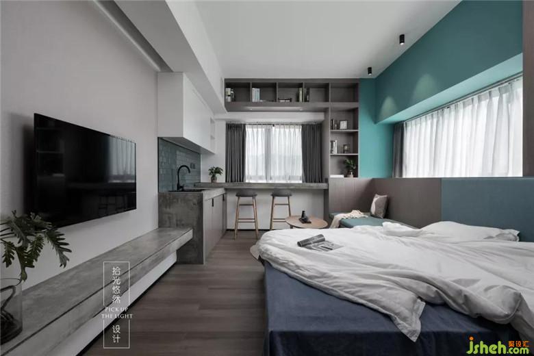 這次設(shè)計(jì)客戶有很明確的審美喜好與生活需求,整個(gè)設(shè)計(jì)圍繞睡眠、休息、創(chuàng)作這三個(gè)生活需求展開。只用暖灰色和藍(lán)寶石色,讓人很輕松,就像身處陽光充裕的海邊沙灘或者夜幕下的北極空地,身心都能得到舒展,非常適合有一場(chǎng)好夢(mèng)或者來一次靈感的邂逅。
