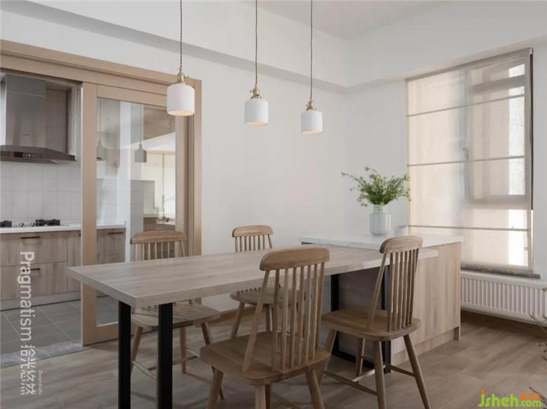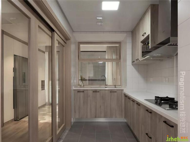 餐廚融入木質(zhì)及玻璃元素,打造簡(jiǎn)潔日系風(fēng)同時(shí)彌補(bǔ)餐廚通光不足的缺點(diǎn),冰箱放置于廚房就近的功能區(qū),擴(kuò)大廚房實(shí)用面積增加烹飪樂趣