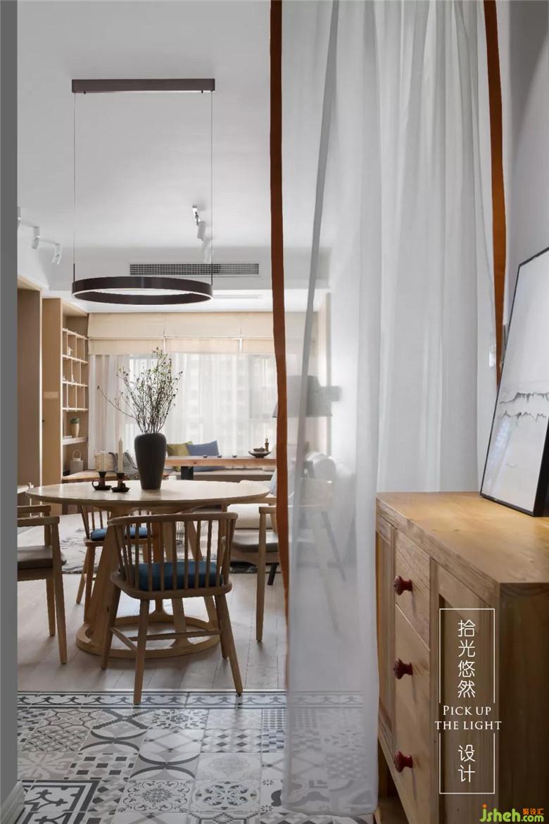 用白紗來作為玄關(guān)的隔斷,地面采用花磚作為玄關(guān)地面作為空間劃分,其次更易于打理衛(wèi)生