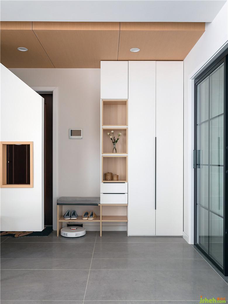 原玄關(guān)空間獨立又封閉,陰暗不合理,且屋主不希望一進門就看到餐廳,直觀全室。設計師為他們做了一個懸空半墻隔斷,去解決原戶型上的缺陷。小姐姐特別提到一個心愿就是 全屋可用掃地機器人 ,做到無衛(wèi)生死角。為了滿足屋主的心愿,我們把所有需清掃的柜體及角落都按照掃地機器人的身高量身定制了懸空柜體。