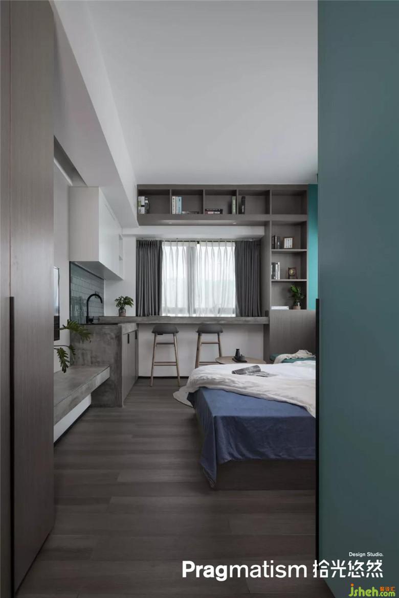 這次設(shè)計(jì)客戶有很明確的審美喜好與生活需求,整個(gè)設(shè)計(jì)圍繞睡眠、休息、創(chuàng)作這三個(gè)生活需求展開。只用暖灰色和藍(lán)寶石色,讓人很輕松,就像身處陽光充裕的海邊沙灘或者夜幕下的北極空地,身心都能得到舒展,非常適合有一場好夢或者來一次靈感的邂逅。