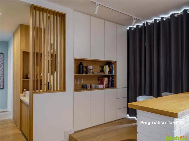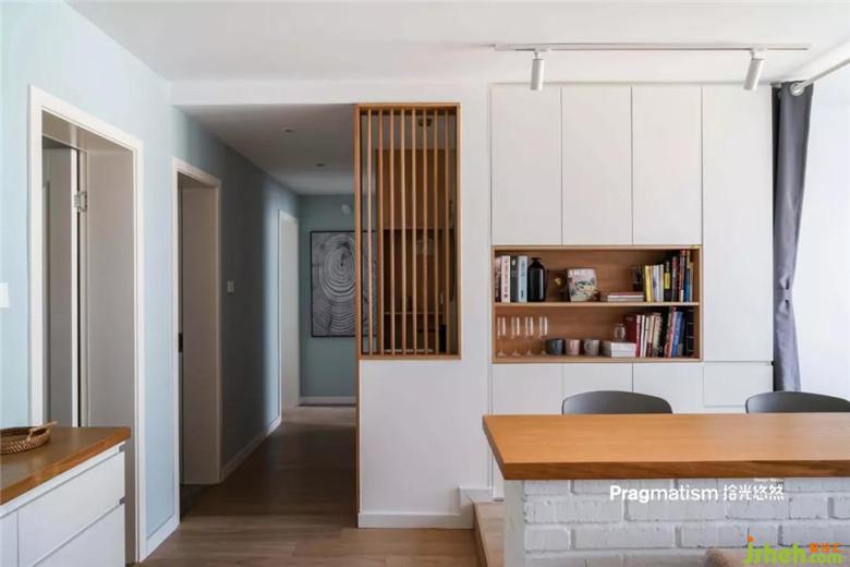 鞋柜側(cè)面做了展示柜,可以放一些喜陰的小植物,收納盒,或隨手放包,將一些美好的瞬間放在這里,開門被幸福迎接。