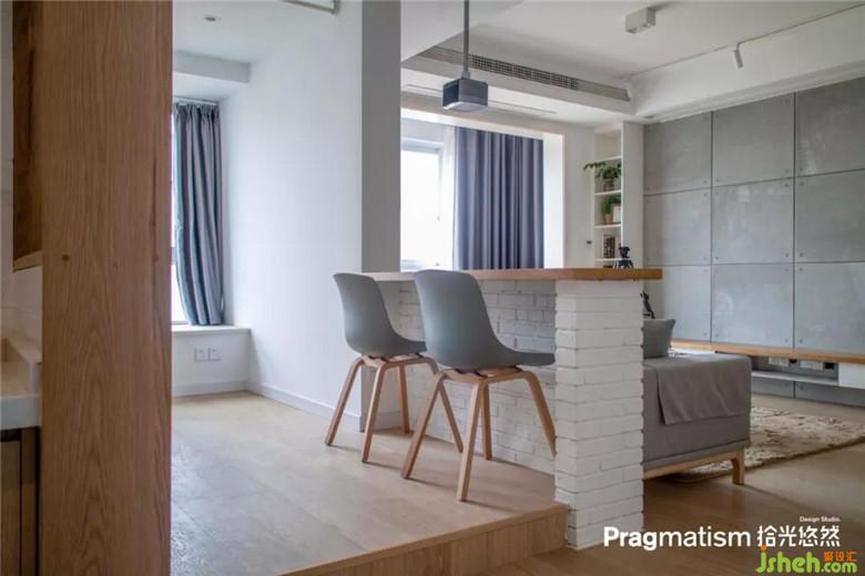 因?yàn)槿霊糸T是緊挨著墻體的,所以我們將鞋柜退后了一些,放了一個(gè)實(shí)木換鞋凳作為緩沖。