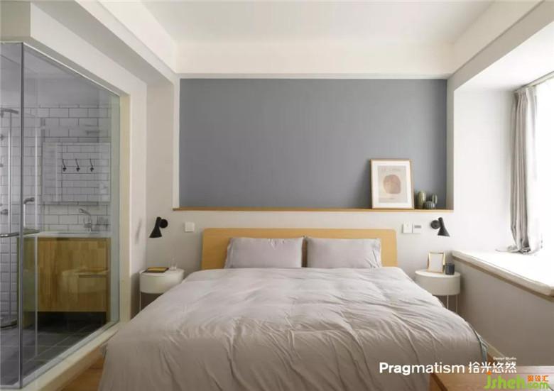 臥室承載著每個人的夢。優(yōu)雅、飽滿、瑩潤的藍(lán)墻,搭配灰色床品,清新優(yōu)雅。