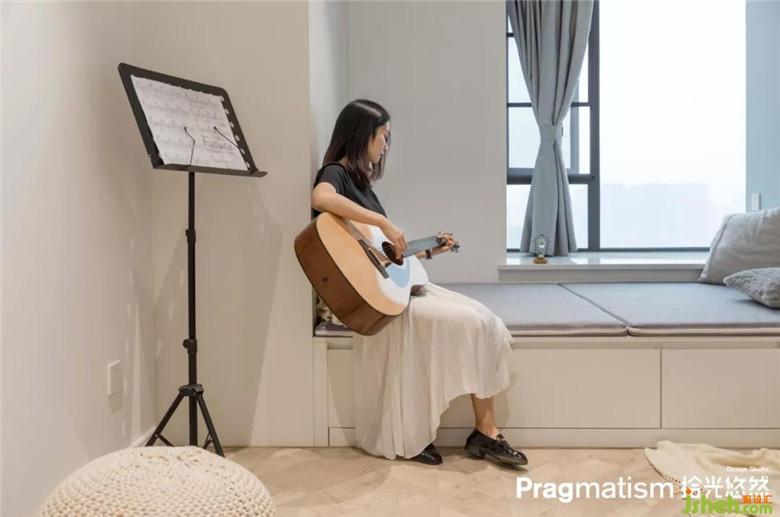 由于日常居住和使用整個(gè)空間的人只有牟小姐,所以我們沒(méi)有刻意的去打造一間傳統(tǒng)次臥,當(dāng)家里偶而來(lái)人時(shí)榻榻米就可以作為休息區(qū)使用。