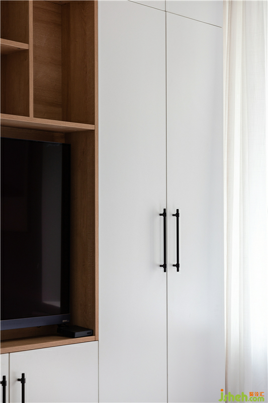 所以盡可能的去做了大面積的柜體,并和電視結(jié)合來滿足業(yè)主父母的需求。