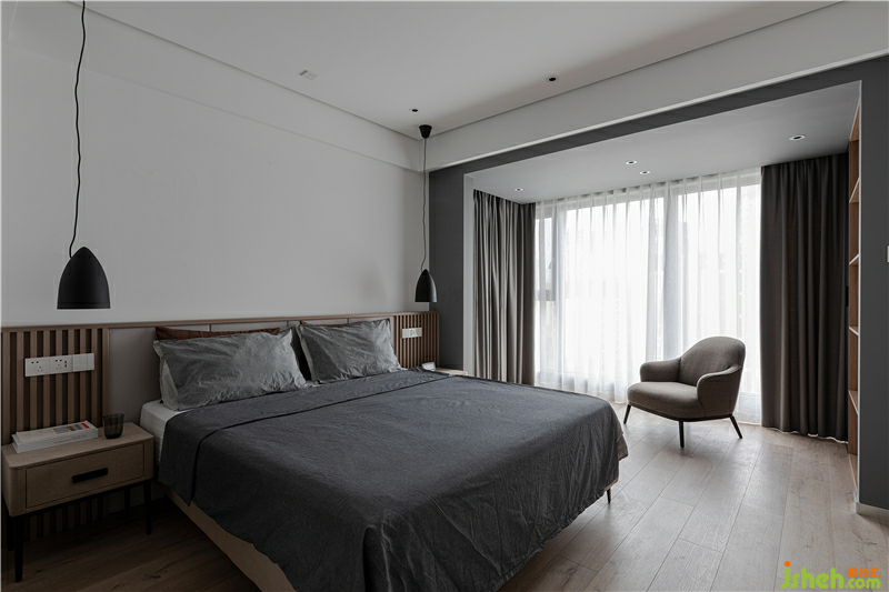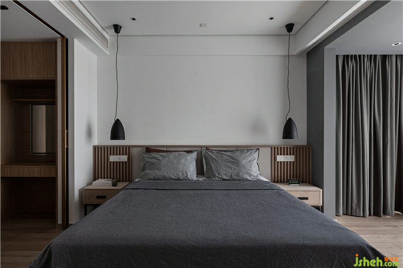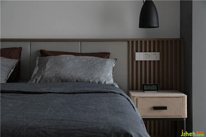 床頭背景墻作為現(xiàn)場木作,柵欄式床頭收口工藝考驗著施工執(zhí)行師的豐富經(jīng)驗和鉆研能力,如何在凹凸不平的木作上美觀的嵌入開關(guān)插座,是一個難題也是一個打怪獸升級的必經(jīng)之路。