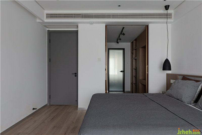 將原始主衛(wèi)空間縮小,以增大衣帽間的面積。同樣的嵌入式推拉門我們運用到了衣帽間,將茶色玻璃作為衣帽間的門面,玻璃的通透讓主臥的每個角落都能沐浴自然光。裝修設(shè)計