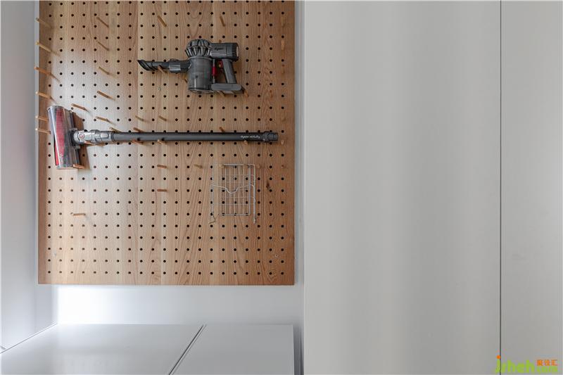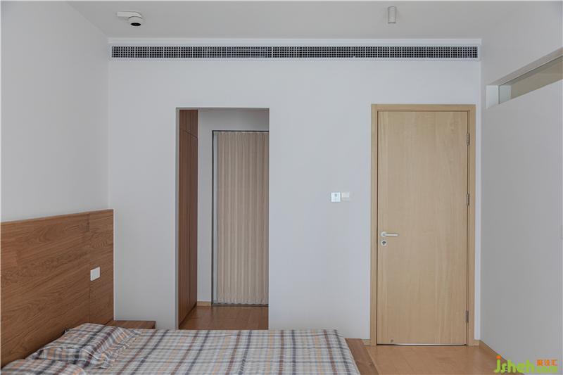 我們將中央空調(diào)的出風口放在了墻體的立面,左側(cè)的門洞內(nèi)是步入式衣帽間,與衛(wèi)生間相互連接的門洞,我們采用了日本的折疊門,性價比高,不占用空間且防水耐用。