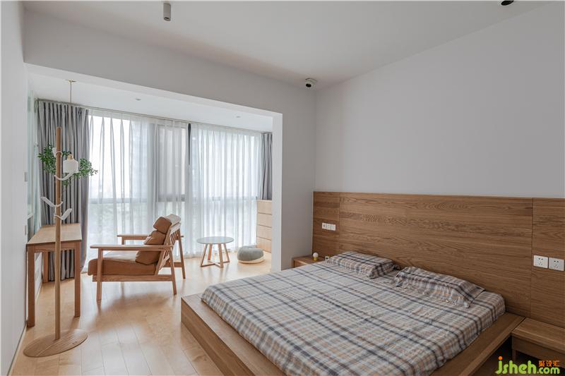 主臥的床設(shè)計的相對較矮,更像榻榻米的感覺。